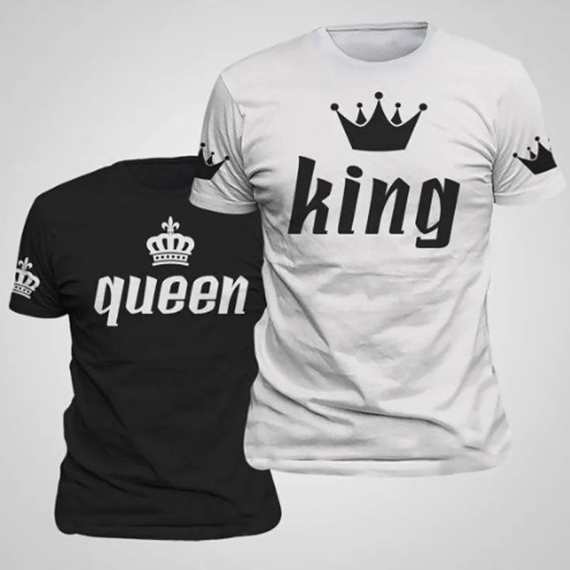 King Queen Lovers T Shirt Crown Printing Couple Clothes Tee Shirt Casual O-neck Tops